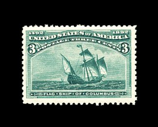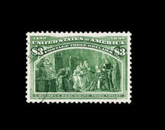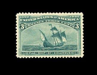 204 nh 232 image#232, 3c Columbian, handsome mint example possessing particularly large and well balanced margins, especially deep rich color, o.g., n.h., extremely fine; 1987 APS certificate. (Image) 120.00