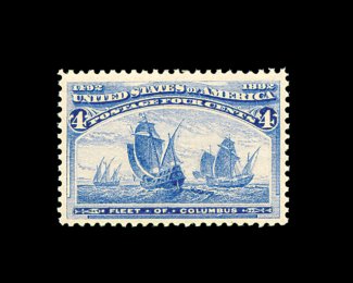 208 nh 233 image#233, 4c Columbian, well centered within wide margins, strong color, flawless even perforations, pristine o.g., n.h., extremely fine; 1995 PF certificate for block of six, this being the bottom right stamp. (Image) 175.00