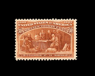 217 og 239 image#239, 30c Columbian, deep intense color and impression, well centered, o.g., lightly hinged, extremely fine. (Image) 300.00