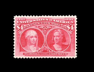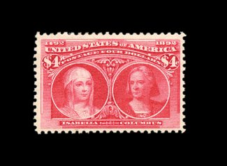 221 og 244 image#244, $4.00 Columbian, deep color and a crisp impression, full clean o.g., lightly hinged, very fine and quite handsome; 1995 PF certificate. (Image) 2,750.00