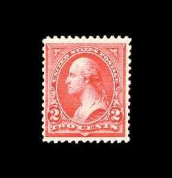 229 nh 252 image#252, 2c Carmine, Ty. III, a superb mint single in absolutely the finest condition possible, precisely centered amid extravagantly large margins for any Bureau issue, prooflike color and impression which is contrasted wonderfully by its bright white paper, unusually even and intact perforations, o.g., n.h., extremely fine; a perfect gem; certain to realize impressive multiples of its catalog value; 2002 PF certificate. (Image) 275.00
