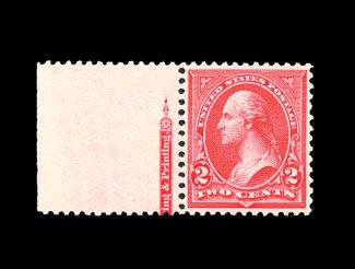 230 nh 252 image#252, 2c Carmine, Ty. III, gem left sheet-margin partial imprint single, incredibly fresh, sumptuously rich color in a deep shade, well incised impression, near perfect centering, immaculate o.g., n.h., extremely fine; 2003 PF certificate. (Image) 275.00