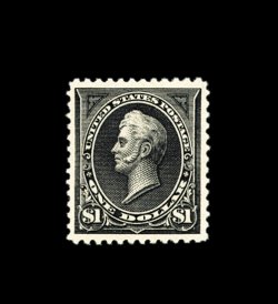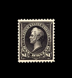 238 og 261A image#261A, $1.00 Black, Ty. II, an incredibly well centered and margined mint example of this truly rare stamp, possessing extravagantly wide and even margins all around, intense "jet" black color and a deeply etched impression on bright paper, especially clean o.g., barest trace of hinging, extremely fine; a gem example of the One Dollar Type II unwatermarked Bureau issue; 2000 PF certificate. (Image) 2,300.00