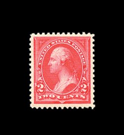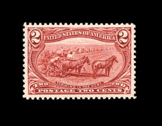 260 nh 286 image#286, 2c Trans-Mississippi, a striking mint example of a relatively common stamp in anything but common condition, featuring extravagantly large margins all around and being wonderfully well centered within them, gorgeous intense color and a prooflike impression, even its perforations are uniformly intact all around, immaculate o.g., n.h., a superb gem for the perfectionist; 1988 PF certificate. (Image) 60.00