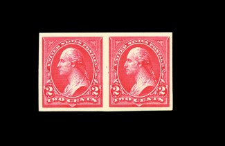 242 nh 267a image#267a, 2c Carmine, Ty. III, imperforate, pristine horizontal pair, brilliantly fresh color, large margins, unblemished o.g., n.h., extremely fine. (Image) for hinged 225.00