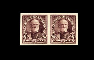248 og 272b image#272b, 8c Violet brown imperforate, gem quality horizontal pair, very large and even margins all around, striking prooflike color and impression, full clean o.g., lightly hinged, extremely fine; 1989 PF certificate. (Image) 450.00