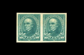 249 og 273a image#273a, 10c Dark green, imperforate, horizontal pair, large margins all around, wonderfully fresh color, o.g., lightly hinged, extremely fine; a select quality pair; 1992 PF certificate. (Image) 350.00