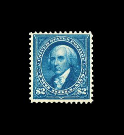 252 nh 277 image#277, $2.00 Bright blue, a highly desirable mint example, being one of the few certified never hinged copies of this scarce high value we have seen, brilliantly fresh and crisp, lovely rich color and a well defined impression on immaculate paper, pristine o.g. without a single gum bend or skip, never hinged, certainly extremely fine considering this stamp's exceptional overall physical attributes; 1998 PF certificate. (Image) 2,750.00