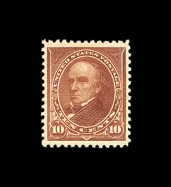 257 nh 282C image#282C, 10c Brown, Ty. I, an absolutely spectacular quality mint example of this always difficult and truly scarce stamp, possessing numerous exceptional physical qualities, including having an incredible overall brilliance and freshness, with stunningly rich color and a prooflike impression on immaculate paper, plus its centering is outstanding amid margins that are uncharacteristically wide, pristine o.g., n.h., extremely fine; among the finest mint #282C's we have ever offered; 1998 PF certificate (top sheet selvage subsequently removed). (Image) 450.00