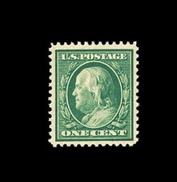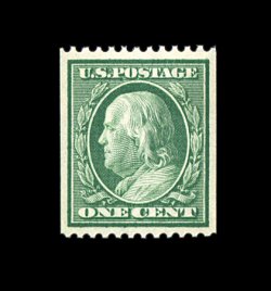 323 nh 348 image#348, 1c Green coil, perf. 12 horiz., select quality mint single, excellent centering, strong rich color and impression, o.g., n.h., extremely fine; 1983 PF certificate for a pair, this being the bottom stamp. (Image) 75.00