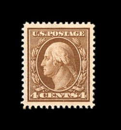 361 nh 377 image#377, 4c Brown, a striking mint single that is flawlessly centered within extravagantly large margins, strong color and impression, o.g., n.h., extremely fine; a most impressive gem; 2002 PF certificate. (Image) 65.00