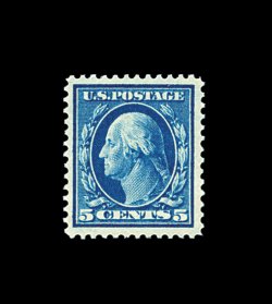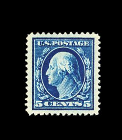 363 og 378 image#378, 5c Blue, jumbo mint single, precisely centered within huge balanced margins, deeply rich color, o.g., accompanying certificate states "previously hinged" although we believe it is n.h. with a tiny gum skip, extremely fine; 1996 PF certificate for a block of four (specifically stating "never hinged"), this being the top left stamp, and a 2003 PF certificate for the single. (Image) 32.50