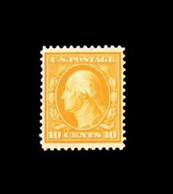 367 nh 381 image#381, 10c Yellow, striking mint example which possesses not only flawless centering amid lavishly large margins, but its color is also most impressive being incredibly deep and vibrant, pristine o.g., n.h., extremely fine; a gem stamp for the collector seeking out extraordinary quality stamps; 1987 PF certificate. (Image) 210.00