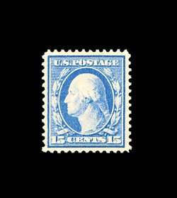 369 nh 382 image#382, 15c Pale ultramarine, fabulously fresh and choice mint example of this surprisingly difficult stamp, possessing uncharacteristically strong color and impression on brilliant paper, incredibly centered as well, with large margins all around, immaculate o.g., n.h., extremely fine; quite rare in this true gem quality; 2001 PF certificate; ex-Floyd. (Image) 575.00