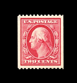 372 nh 386 image#386, 2c Carmine coil, perf. 12 horiz., a superb mint example of this scarce coil, possessing margins of extraordinary size for a perf. 12 coil and being perfectly centered within them, deep "fiery" color and impression on bright paper, pristine o.g., n.h., extremely fine; one of the few certified gem examples of this we have ever encountered; 1991 PF certificate. (Image) 150.00