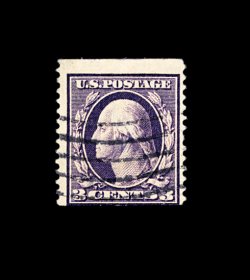 374 O 389 image#389, 3c Deep violet, Ty. I, "Orangeburg Coil", perf. 12 vert., an attractive appearing used example of this rare and sought after coil, which was issued specifically for use by the Bell Pharmaceutical Co. to mail their samples to doctors, centered to bottom, strong color in the characteristic deep violet shade, neat and unobtrusive wavy line machine postmark, there are a couple of corner creases at bottom right which are endemic to these, still fine for this major 20th century coil rarity; 2000 PSE certificate. (Image) 10,000.00