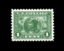 392 nh 401 image#401, 1c Panama-Pacific, perf. 10, exceptional centering amid large margins, incredibly bright and fresh, deep luxuriant color, fully intact perforations, o.g., n.h., extremely fine; a little gem. (Image) 55.00