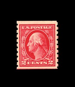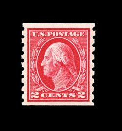 399 nh 413 image#413, 2c Carmine coil, perf. 8 1/2 vert., gem mint single, incredibly well centered within extra-large margins, deep "fiery" color, o.g., n.h., extremely fine; 2002 PF certificate. (Image) 95.00