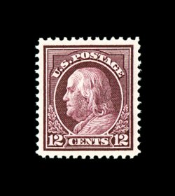 405 nh 417 image#417, 12c Claret brown, precise centering within very large margins, especially bright and fresh, deep color, o.g., n.h., an extremely fine gem; 1999 PF certificate. (Image) 100.00