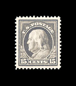 407 nh 418 image#418, 15c Gray, a seldom seen gem example of this value, featuring unusually large and perfectly balanced margins all around, strong rich color, pristine o.g., n.h., extremely fine; 1991 PF certificate. (Image) 175.00