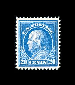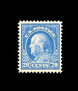 409 nh 419 image#419, 20c Ultramarine, wonderfully choice mint example, possessing an exceptional overall brilliance, strong rich color and impression on immaculate paper, large even margins all around, o.g., n.h., extremely fine; quite elusive in this gem quality; 1996 PSE and 2001 PF certificates. (Image) 400.00