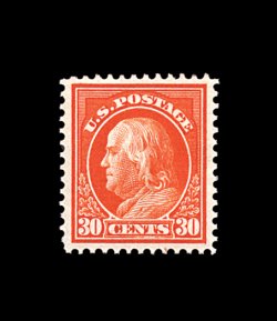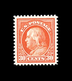 412 nh 420 image#420, 30c Orange red, lovely mint single, exceptionally well centered within uncharacteristically large margins, sumptuously rich color and a deeply etched impression on crisp paper, o.g., n.h., extremely fine; 2000 PF certificate. (Image) 250.00