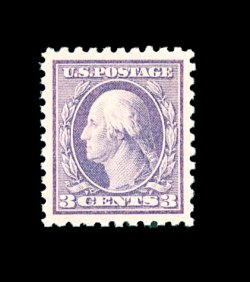 416 nh 426 image#426, 3c Deep violet, incredibly well centered amid lavishly large margins, bright fresh color, pristine o.g., n.h., extremely fine; an impressive large-margined gem; 1988 PF certificate. (Image) 30.00