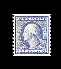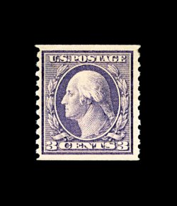 446 nh 456 image#456, 3c Violet rotary coil, Ty. I, perf. 10 vert., gem mint single, being flawlessly centered within large margins, strong rich color on bright paper, o.g., n.h., extremely fine; choice certified singles of this coil are decidedly scarce; 1991 PF certificate. (Image) 475.00