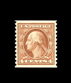 449 nh 457 image#457, 4c Brown rotary coil, perf. 10 vert., highly select mint single, perfectly centered within large margins, strong rich color on immaculate paper, o.g., n.h., extremely fine; a pristine gem; 1995 PF certificate. (Image) 47.50