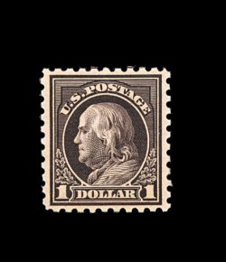 452 og 460 image#460, $1.00 Violet black, an exceptionally choice and brilliantly fresh mint example of this high value, possessing truly prooflike color and impression, outstanding centering within large margins, pristine o.g., with just the barest suggestion of a hinge mark (despite the accompanying certificate specifically describing this stamp as "never hinged"), extremely fine; 1995 PSE certificate. (Image) 850.00