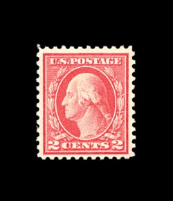 444 nh 453 image#453, 2c Carmine rose rotary coil, Ty. I, perf. 10 vert., a superb mint single, boasting the finest centering and largest margins we have ever encountered, radiant color and a razor-sharp impression on bright paper, immaculate o.g., n.h., an extremely fine gem for the perfectionist; 2000 PF certificate; ex-"Piedmont" collection. (Image) 290.00