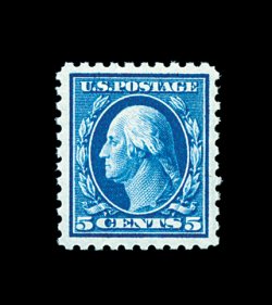 455 nh 466 image#466, 5c Blue, particularly well centered within wide margins, strong rich color and impression, o.g., n.h., extremely fine. (Image) 150.00