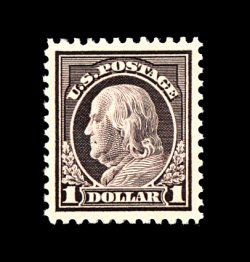 501 nh 518 image#518, $1.00 Violet brown, extraordinarily well centered and margined, deep luxuriant color, strong detailed impression, o.g., n.h., extremely fine; a "post office" fresh gem; 1989 PSE certificate (top sheet selvage subsequently removed). (Image) 100.00