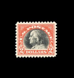504 nh 523 image#523, $2.00 Orange red and black, a superlative mint example, boasting exceptionally large and perfectly balanced margins all around, deep rich colors, pristine o.g., n.h., extremely fine; actually quite rare and highly desirable in this gem never hinged condition; 1992 PF certificate. (Image) 1,250.00