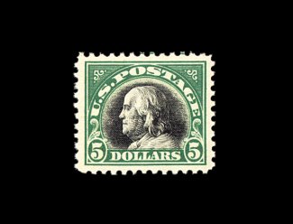 506 nh 524 image#524, $5.00 Deep green and black, very well centered and margined, strong colors, o.g., n.h., extremely fine. (Image) 400.00