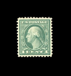 519 nh 545 image#545, 1c Green coil waste, perf. 11, an incredibly choice mint example of this surprisingly challenging stamp to find in premium condition, featuring near perfect centering amid extravagantly large margins which are most uncharacteristic, strong bright color, o.g., n.h., an extremely fine gem; 2002 PSE certificate. (Image) 400.00