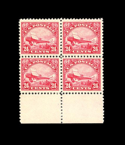 568 nh C6 image#C6, 24c Carmine, marvelously well centered amid extraordinarily large margins, especially deep color and a well incised impression, o.g., n.h., extremely fine; 1997 PF certificate for a block of four, this being the bottom right stamp. (Image) 150.00
