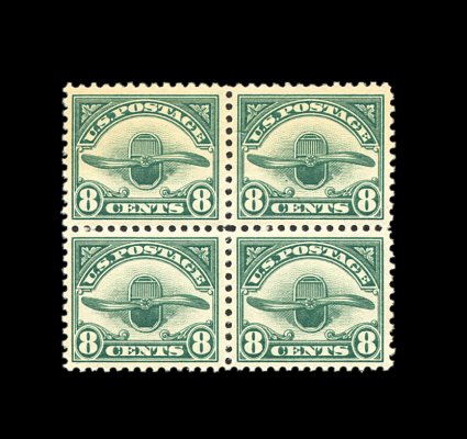 562 nhbl C4 image#C4, 8c Dark green, mint block of four, nicely centered, o.g., n.h. (top right stamp with perf. disc on gum), very fine. (Image) 160.00