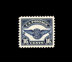 564 nh C5 image#C5, 16c Dark blue, an especially impressive mint example, featuring lavishly large margins and being perfectly centered within them, prooflike color and impression on bright crisp paper, o.g., n.h., extremely fine; a gem stamp for the most fastidious collector; 1990 PF certificate. (Image) 140.00