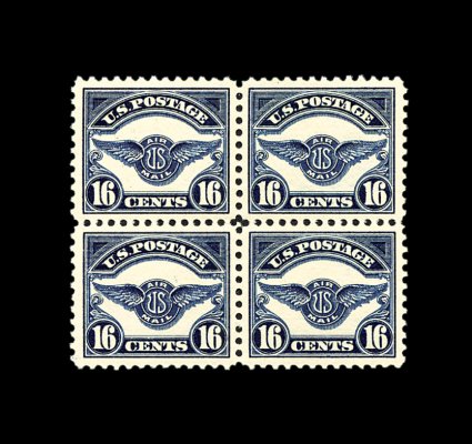 566 ogbl C5 image#C5, 16c Dark blue, mint block of four, very well centered, strong color, o.g., very lightly hinged, bottom left stamp with light owner's handstamp on gum, very fine-extremely fine. (Image) 320.00