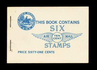 569 BK C10a image#BKC1, 10c Dark blue, 61c unexploded booklet of two #C10a panes, both panes being the scarcer position J, with guide line at bottom, covers and panes are quite fresh, o.g., n.h., very fine. (Image) 250.00+