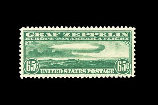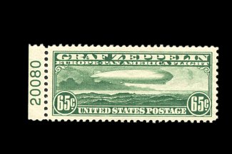 576 nh C13 image#C13, 65c Graf Zeppelin, an especially choice mint single that features extraordinarily large margins all around, plus it is marvelously well centered within these impressive borders, deep luxuriant color, pristine o.g., n.h., extremely fine gem; 1992 PF certificate. (Image) 350.00