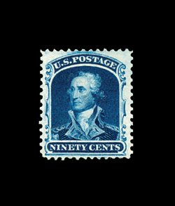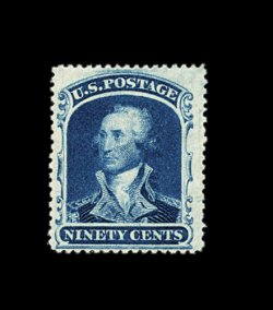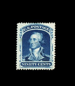 41 og 39 image#39, 90c Blue, an extraordinary quality mint example, being exceedingly well centered amid huge margins which are almost unheard of on this value, even its margins at top and bottom (which are typically tight) are impressively wide on this stamp, gloriously rich color and impression on pristine paper, full clean o.g., lightly hinged, extremely fine gem; a terribly challenging and rare stamp in this outstanding condition; 2002 PF certificate. (Image) 3,000.00