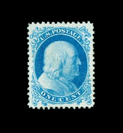 43 og 40 image#40, 1c Bright blue reprint, without gum as issued, an incredibly well centered example which possesses extravagantly large and wonderfully well balanced margins, bright fresh color, extremely fine; seldom encountered this choice; 1983 PF certificate. (Image) 625.00