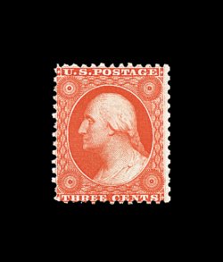 51 nh 56 image#56, 3c Brown rose "August", gem mint example, brilliantly fresh and crisp, with rich luxuriant color and a razor-sharp impression on immaculate paper, virtually perfect centering amid unusually wide margins for this value, pristine o.g., never hinged, extremely fine; while Three Cent "August" Issues are offered with some frequency at auction, few can compare to the example offered here in terms of its overall extraordinary condition; 1990 PF certificate. (Image) for hinged 550.00