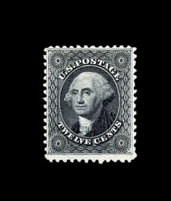 53 og 59 image#59, 12c Black "August", part original gum, strikingly intense color and impression on bright paper, small surface scrape at bottom which is almost unnoticeable, otherwise without any of the other major faults which affect the majority of known examples, centered a bit to top as often found, very fine for this great rarity. According to the Philatelic Foundation's records, there are only 15 stamps which have been certified as genuine Twelve Cent "August" issues (one of which has been cancelled "New" in manuscript). There is an additional uncertified example housed in the New York Public Library's collection. Of the 15 stamps available to collectors the vast majority have faults to some degree. The immense rarity of this stamp is underscored by the fact that only one or two Twelve Cent "August" issues make an appearance at auction in a given year - if at all. Signed W.H.C. (Warren H. Colson) and accompanied by 1976 and 2002 PF certificates; ex-Lutwak, Lessin. (Image) 47,500.00
