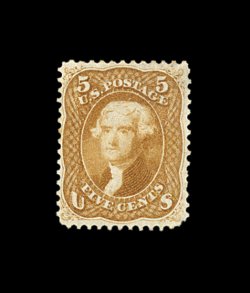 59 ng 67 image#67, 5c Buff, an especially attractive unused example of this very rare stamp, being among the few certified unused Five Cent Buff stamps that is completely fault free, exceptionally well centered for this typically poorly centered stamp, wonderfully rich and vibrant color, strong impression on bright paper, slightly rounded corner perforation at bottom right mentioned for accuracy only, very fine; clear 1974 PF certificate. (Image) 9,500.00