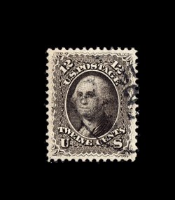 60 O 69 image#69, 12c Black, an especially pretty used single, exceptionally well centered within very large margins, strong prooflike color and impression on bright fresh paper, wonderfully postmarked with a desirable light town c.d.s., an extremely fine used gem; 2003 PF certificate. (Image) 100.00