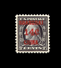 605 nh K7 image#K7, 14c on 7c Black, select mint single with precise centering, large margins with full even perforations, sharp prooflike impression, o.g., n.h., extremely fine; 1996 PF certificate. (Image) 190.00
