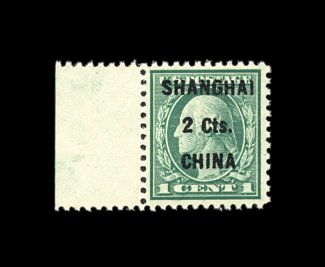 611 nh K17 image#K17, 2c on 1c Green, locally surcharged, left sheet-margin single, wonderfully well centered and margined for this value, beautifully fresh with bright color, o.g., n.h., choice very fine; 2002 PF certificate. (Image) 230.00